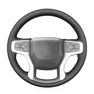 MEWANT DIY Black Genuine Leather Steering Wheel Cover for Chevy Silverado 1500/2500/3500 Suburban Tahoe Blazer