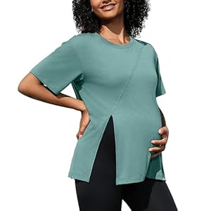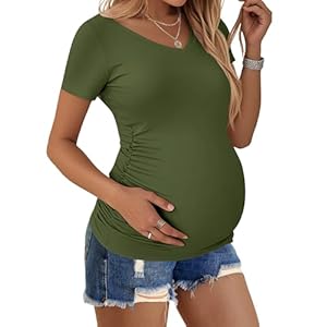 Ekouaer Womens Maternity Shirts Long Sleeve 3 Packs Pregnancy V-Neck Clothes Side Ruched Blouse Tops for Mama S-XXL