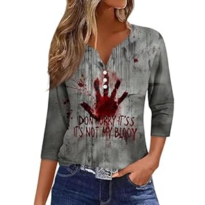 Womens Halloween Shirts Funny Costume for Women Cute Going Out Tops Shirt Casual 3/4 Length Sleeve Funny Tops