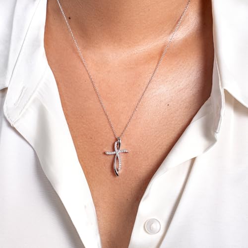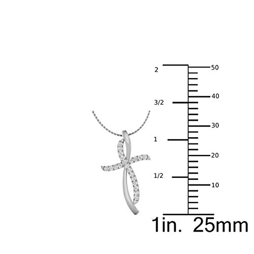 1/4 Carat Diamond Cross Pendant Necklace for Women in 14k White or Yellow Gold (F-G, SI2-I1, cttw) with 18 Inch Silver Chain and Lobster Claw