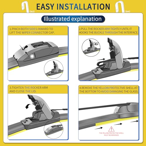【LONG-LASTING PERFORMANCE】:High service life wiper, quiet use, eliminate the rain blocking the line of sight, ensure a clear vision, all-weather guard driving safety.