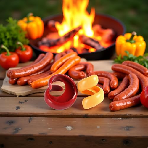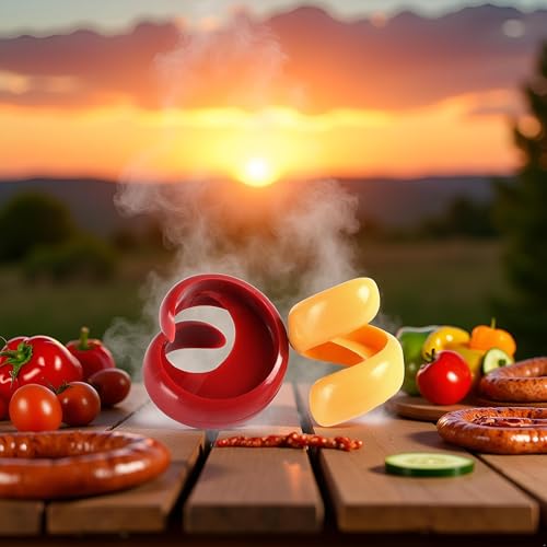 Elevate your backyard grilling experience with this 2-piece manual fancy sausage cutter set. Crafted with precision, this cyclone barbecue sausage cutter allows you to create spiral-cut hot dogs with ease, adding an extra touch of flair to your cookouts. The spiral design not only looks visually appealing but also increases surface area for better browning and crispiness. This sausage cutter slicer is a must-have kitchen gadget for anyone who loves to impress their guests with creative and delicious hot dog presentations. Made from durable materials, it ensures long-lasting performance and effortless cutting every time. Upgrade your grilling game and bring a touch of fun to your next barbecue with this manual fancy sausage cutter set.