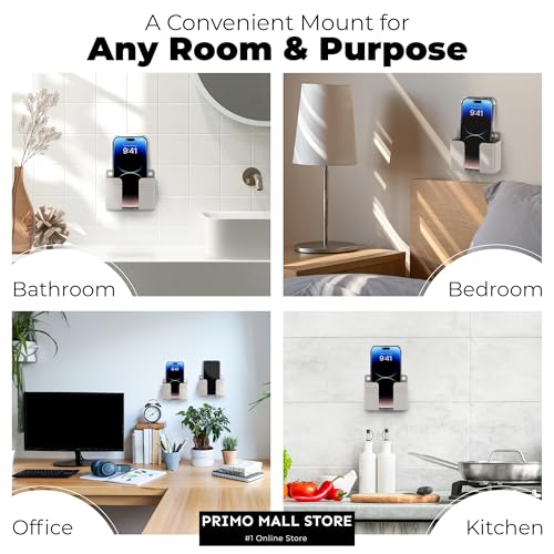 VERSATILE MOUNTING: Universal wall mount holder compatible with all smartphone sizes, perfect for bedside, kitchen, office, or bathroom use