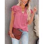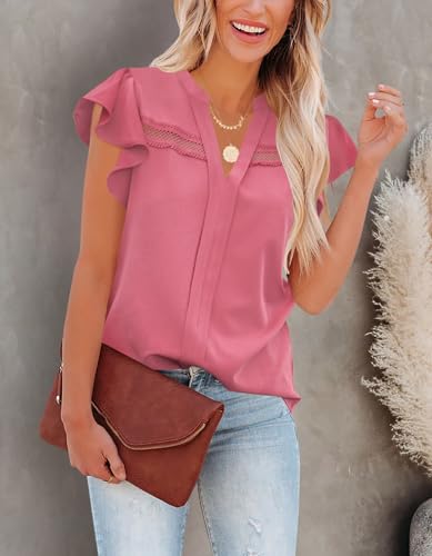 Aifer Womens Summer Blouses Dressy Casual V Neck Lace Crochet Flutter Short Sleeve Work Shirts Trendy Tops 2025