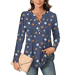 Bestbee Women’s Long Sleeve Button-Down Shirts V Neck Tunic Tops 2024 Fall Tops Casual T-Shirts Dressy Blouses