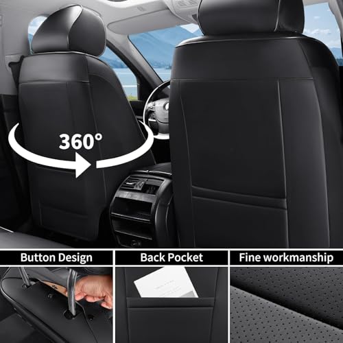 Bling Car Seat Covers Full Set, Luxury Faux Leather Car Seat Covers Waterproof Non-Slip Seat Protector Universal Fit for Most Cars SUVs Trucks Pick-ups,Car Accessories Interior for Women(Black)