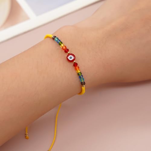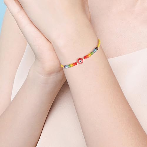 Colorful Evil Eye Beaded Braided Bracelet for Woman, Trendy Handmade Crystal Beads Adjustable String Rope Lucky Protection Bracelets Friendship Holiday Fashion Jewelry Gift