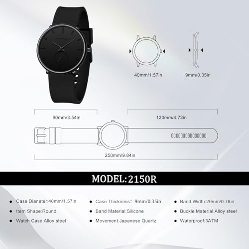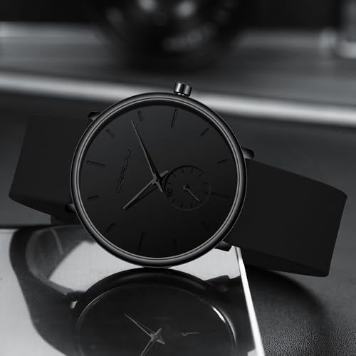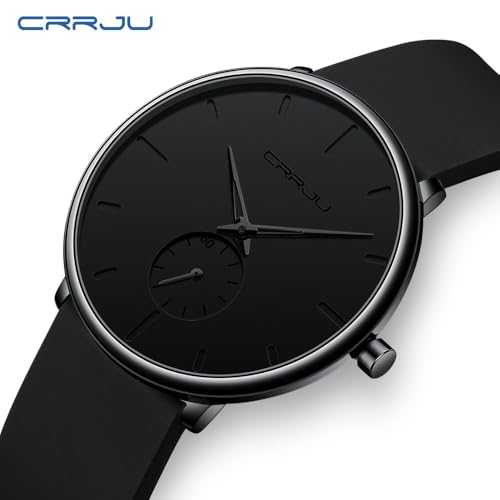 CRRJU Men’s Casual Stylish Waterproof Quartz Wristwatches, Ultra Thin Second Hand Watches for Men, Colorful Silicone Band