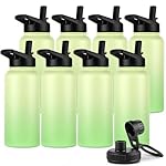 DOMICARE 32 oz Insulated Water Bottle Bulk, Vacuum Insulated Stainless Steel Sports Water Bottle with Straw Lid & Spout Lid, Leakproof, Reusable – Travel, Camping, Bike, Green Gradient (8 Pack)