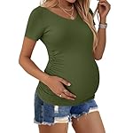 Ekouaer Maternity Shirts V Neck Short Sleeve Side Ruched Tops Tunic Casual Pregnancy Clothes S-XXL