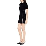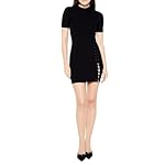 A knit sweater dress featuring a crew neck, short sleeves, lace-up side design, mini length, and bodycon silhouette.