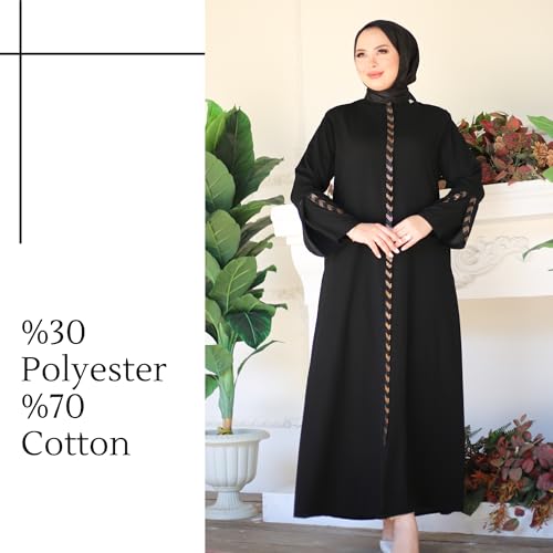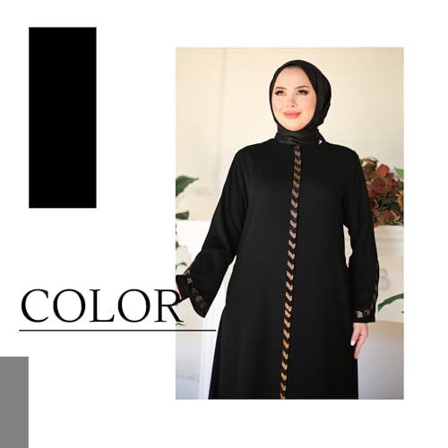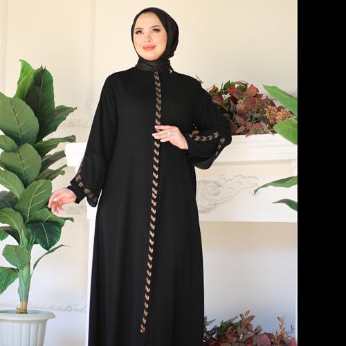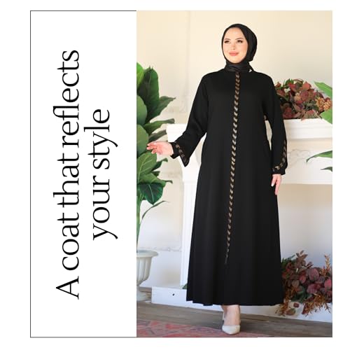 Hijab Abaya For Women | Stone Detailed Zippered Long Sleeve Islamic Kaftan Maxi Size | Arabic Robe Prayer Clothing