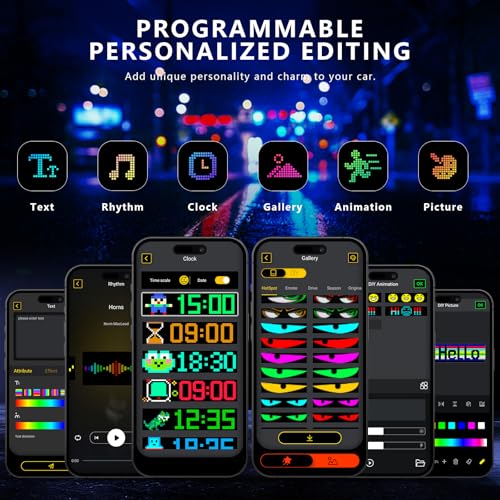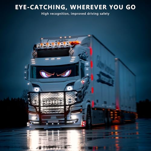DURABLE & IP65 WATERPROO: Our windshield eyes animated led features a high-quality, IP65 waterproof and dustproof casing ensures long-term reliability, so you don’t have to worry about replacing it anytime soon. High-resolution led matrix panels supporting 16 million color gradients, vivid displays even in extreme weather, it can also as a safety warning device in low-light conditions, maximizing visibility, alerting other drivers of your presence, enhance your safety on the road.