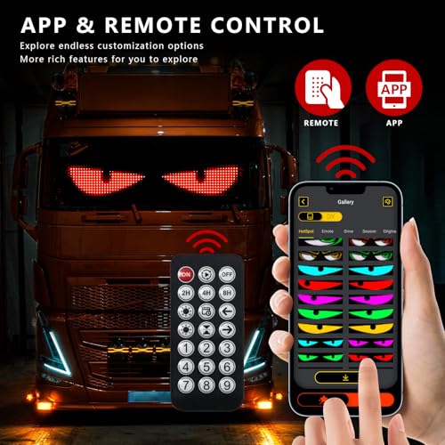 PROGRAMMABLE & CUSTOMIZATION: This led eyes for car windshield offers you unrivalled control. Through a user-friendly mobile app and remote control, you can effortlessly customize the display. It comes with a rich library of pre-program med templates (devil eyes, driving signs, emoticons etc) and can be synchronized with music, bouncing to the beat. If that’s not enough, you can also customize text, patterns, and dynamic effects via APP, allowing you to create a one-of-a-kind look.