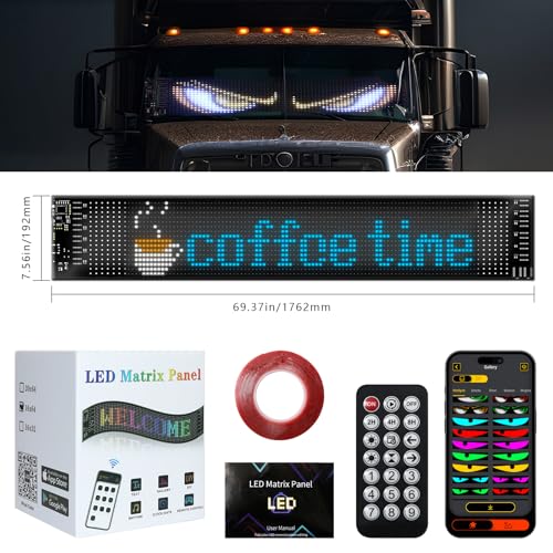 WIDE APPLICATION: Led sign for car size:69.4″x7.56″(Please confirm windshield size before purchasing). Ideal choice for commercial trucks or large vehicles, it is also perfect for cars, trucks , semi truck windshield, shop, bars, hotel, commercial signage, concerts, weddings, retail promotions or held in your hand to support your idol or express yourself on important occasions etc. Our ojos led para carro definitely a great gift for car enthusiasts, family and friends!