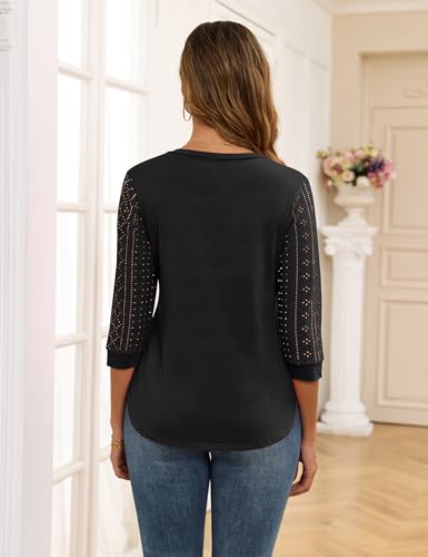 MAKABO Women’s Casual 3/4 Ruffle Sleeve Tops Blouses Print Round Neck Shirts
