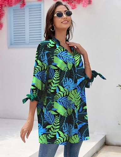 MAKABO Women’s Long Sleeve V Neck Floral Button Down Shirt Bright Print Blouse Tie-Cuff Cardigan Tops