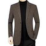 Men’s Autumn Brown Plaid Two Button Vintage Blazers Spring Fashion Slim Fit Sport Coat Suit Jacket