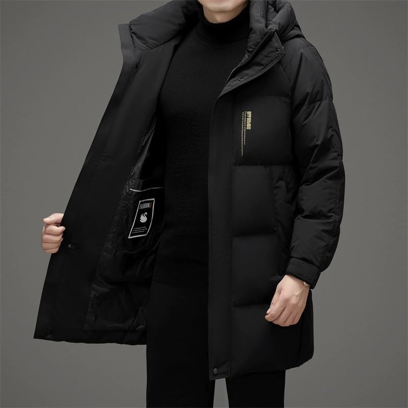 Men’s Hooded Down Jacket Solid Color Thickened Warm Winter Coat Fashion Casual Puffer Jackets