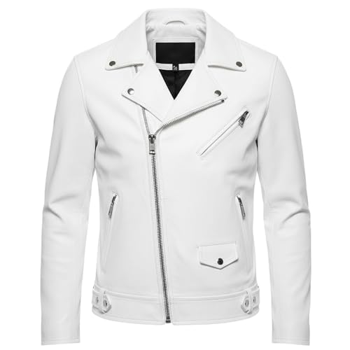 💀 Men’s Quilted White Skull Vintage Retro Leather Biker Jacket – Summer Riding Style