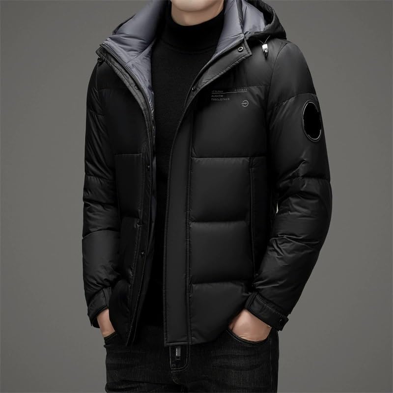 Men’s Short Down Jacket with Hood Business Casual Winter Coat Warm Cold Weather Fashion Puffer Jackets