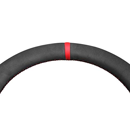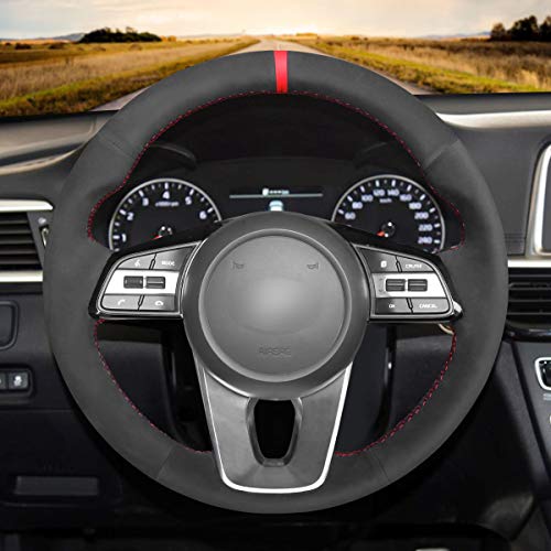 MEWANT Car Steering Wheel Cover for Kia Sportage 2020-2022 / Forte 2019-2022 / Seltos 2021-2022 / Optima 2019-2020 Hand-Stitched Sewing Black Suede