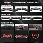 ★ Customization: Mewant customable suede&genuine leather steering wheel cover, suede 3 colors options: black, blue, red; genuine leather: black, beige, dark grey. and 10 color stripes;red, orange, yellow, green, light blue, blue, purple, black, grey, white; new hollow and embroidery stripes. 17 thread colors. 100% perfectly fit your steering wheel, precise fit just like the OEM. If you need to custom, please order customized version and send us message to confirm the material and thread color