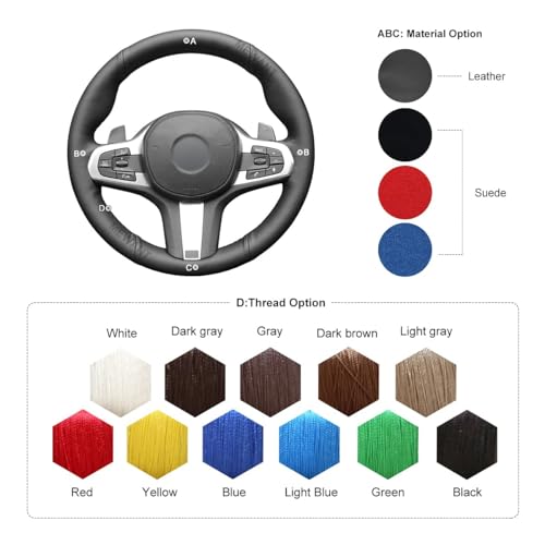 MEWANT Steering Wheel Cover for BMW 5 Series G30 G31 6 Series GT G32 7 Series G11 G12 X3 G01 X4 G02 X5 G05 Hand-Stitched Genuine Leather Car Steering Wrap