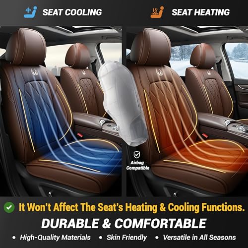 OASIS AUTO Car Seat Covers Premium Waterproof Faux Leather Cushion Universal Accessories Fit SUV Truck Sedan Automotive Vehicle Auto Interior Protector Full Set (Coffee)