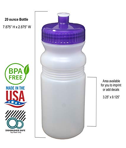 VALUE PACK : Bulk Set of 100 reusable 20oz plastic drink bottles, lid colors include: black, blue, clear, green, navy, orange, pink, purple, red, yellow
