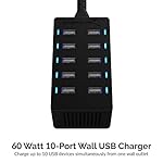 Sabrent 60 Watt (12 Amp) 10-Port [UL Certified] Family-Sized Desktop USB Rapid Charger. Smart USB Ports with Auto Detect Technology [Black] (AX-TPCS)