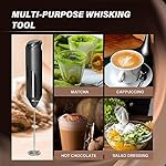Simple Deluxe Milk Frother Handheld with Stainless Steel Stand Battery Operated Whisk Drink Mixer for Coffee, Frappe, Latte, Matcha, Black