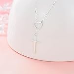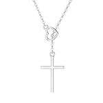 SISGEM 14K Real Gold Cross Necklace for Women,Yellow/White Gold Small Heart Cross Y-Necklaces,Anniversary Birthday Jewelry Present for Wife Mom 16”+2”