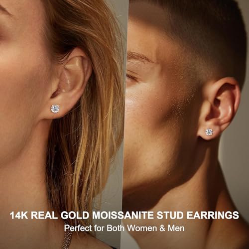 RAPRGOLD 10K / 14K Real Gold Moissanite Stud Earrings for Men Women, 1.6CTTW D Color VVS1 Clarity Lab Created Solitaire Moissanite Imitation Diamond Earrings Jewelry Gift for Women Men Wife Mom Her