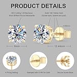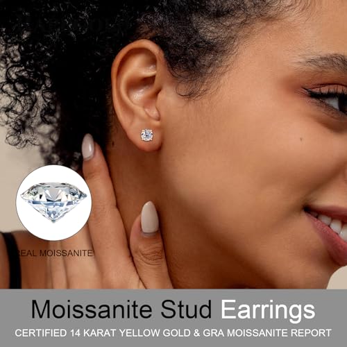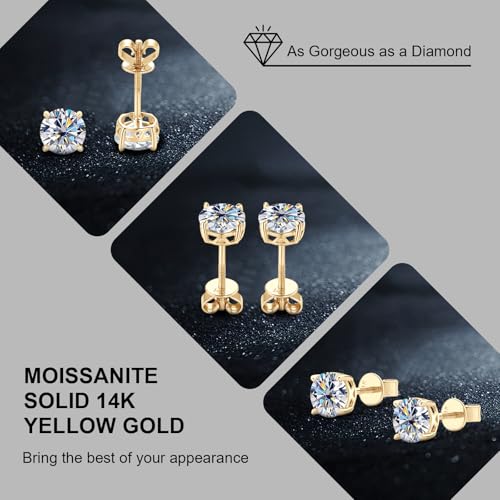 Solid 10K / 14K Yellow Gold Stud Earrings for women, Moissanite Earrings Studs Engagement Wedding Earrings Anniversary Christmas Birthday Mothers Day Fathers Day Valentines Day Jewelry Gifts for Men Women