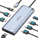 【8K Dual HDMI Display Port】This MOKiN USB C multiport adapter with 8 ports, 3 monitors display port: 2 x 8K@60Hz HDMI Ports and 1 x 4K@60Hz USB C video output. 3 x 10Gbps USB-C 3.1 ports,1 x 100W PD charging port and 1 x 1000Mbps Ethernet port.This is a usb c hub for laptop with powerful functions.