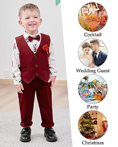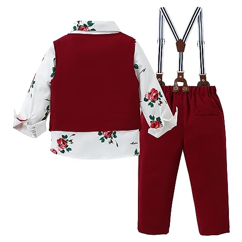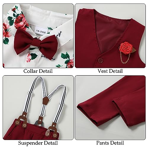 WESIDOM Toddler Boy Clothes Suit Formal Dress Shirt+Bowtie+Vest+Boutonniere+Suspender Pants Boys Gentleman Outfits Set