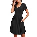 Women’s 2025 Summer Short Sleeve Dresses Casual Loose Fit Swing T Shirt Dress V Neck Sundress with Pockets