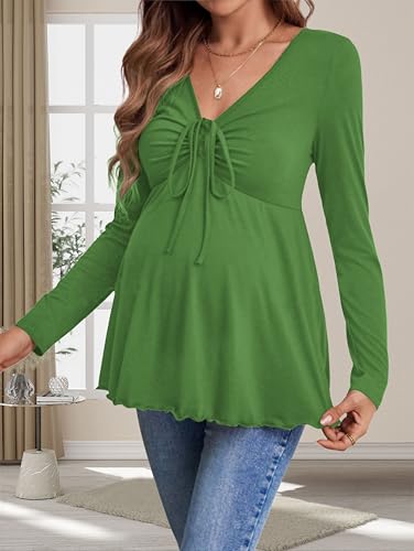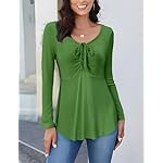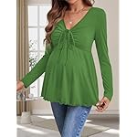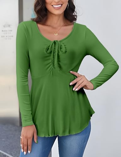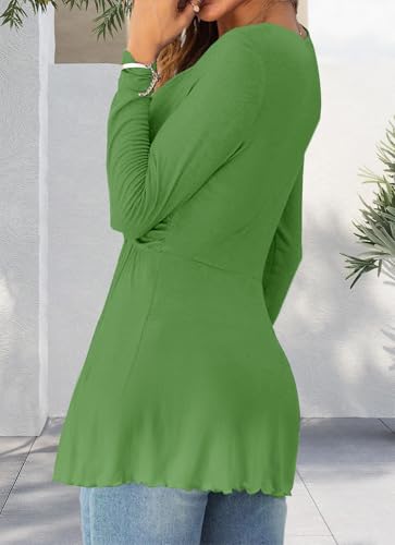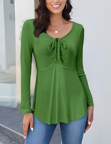 Womens V Neck Long Sleeve Tunic Tops 2025 Summer Dressy Casual Blouses Pleated Front Flare Shirts