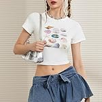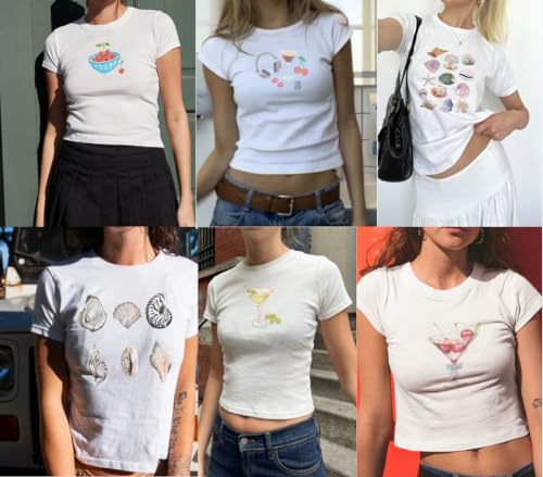 Y2K Cute Graphic Baby Tee for Women Graphic Crop Top Fairy Grunge T Shirt Going Out Streetwear E Girl Clothing White